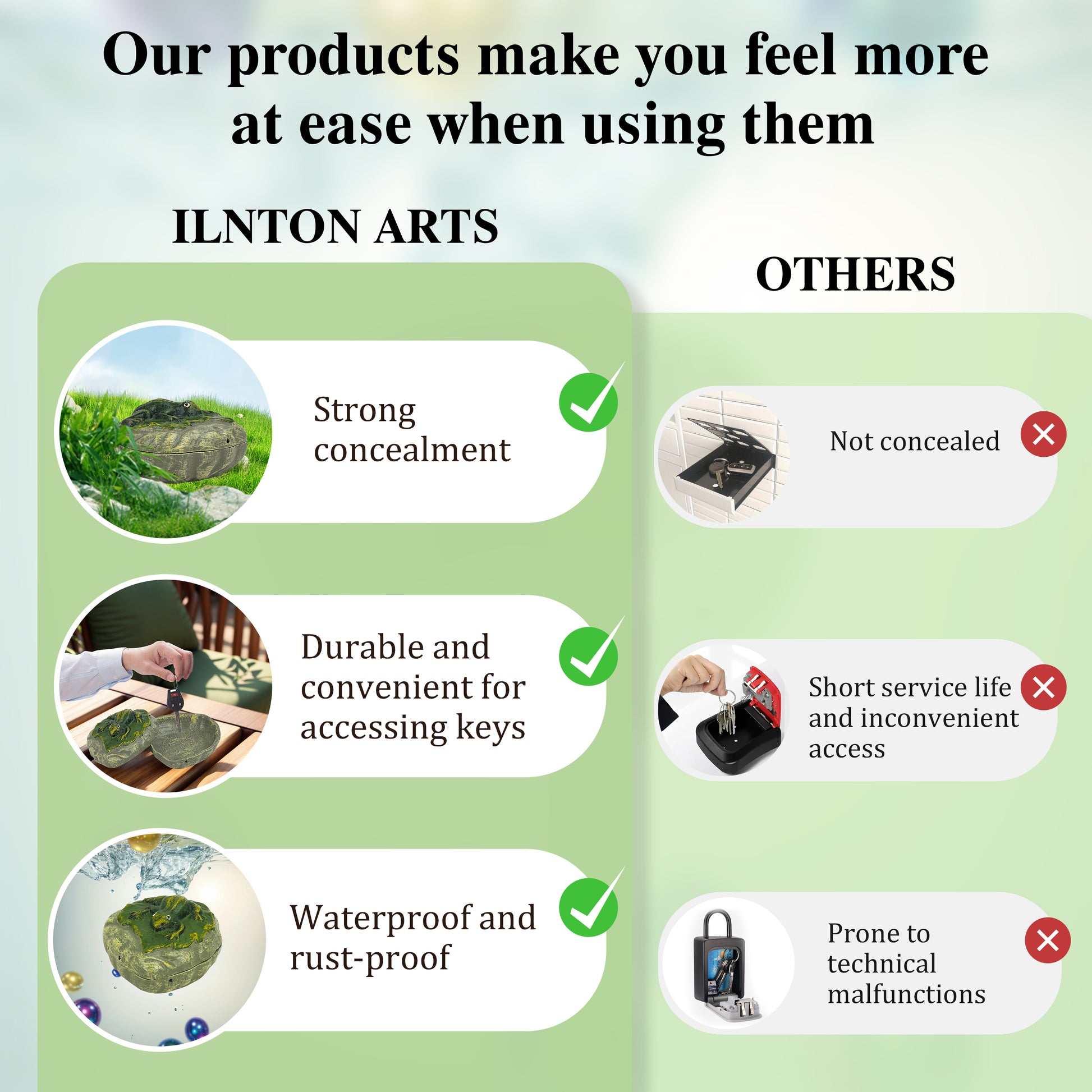 ๐ Compact and Easy to Place โ Measuring 4.84"x4.4"x2.59", this small and subtle key hider can be placed in flowerbeds, entryways, or hidden corners without taking up much space.